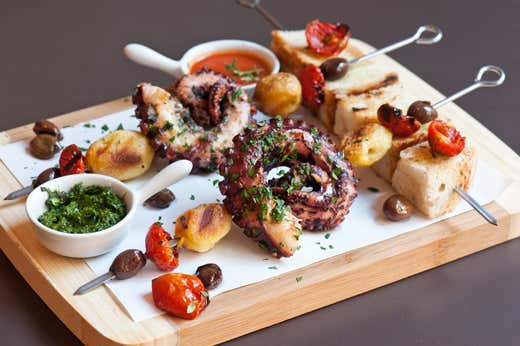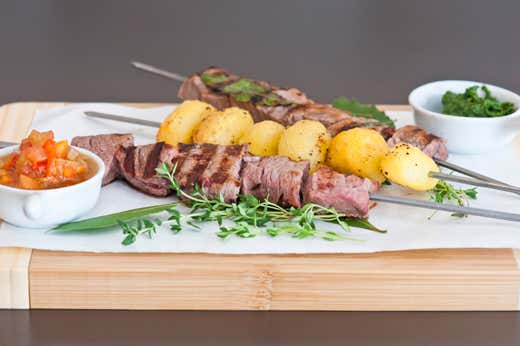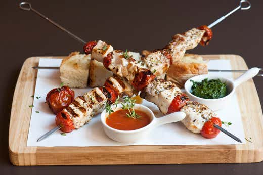 Il menu, ricco d’informazioni anche su proteine e calorie, invita ad assaporare i cibi più vari sullo spiedino, lo stecco su cui vengono infilzati carni, pesci, formaggi e verdure, tutto caldissimo appena tolto dalla griglia. Ma ci sono anche fritti, tartare crude e cotte e persino proposte vegane.
