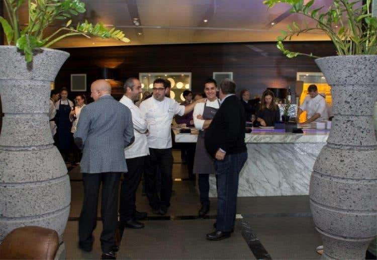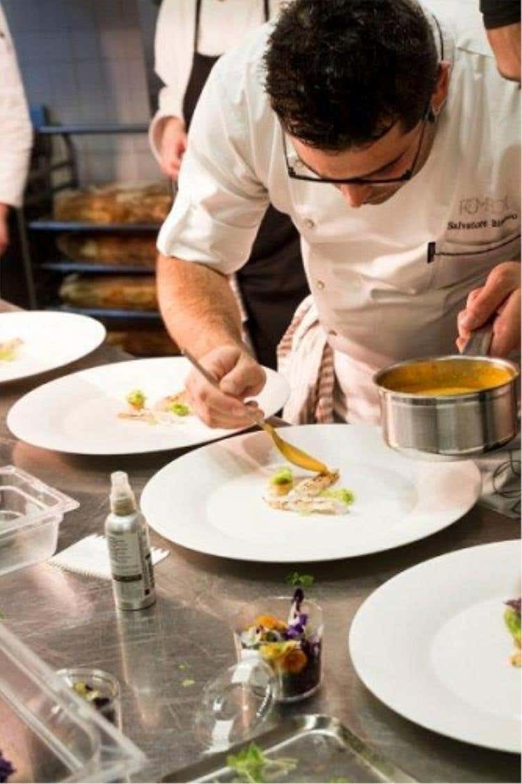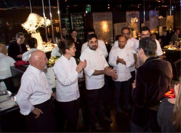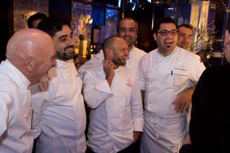 nella foto, primo a sinistra). E Salvatore, dal management della struttura coadiuvato e ben supportato, cosa fa? Nell'imminenza delle festività di fine anno (e a pochi giorni dall'uscita dell'edizione 2016 della "rossa") diviene il resident chef e invita, per una cena che si rivela sontuosa e memorabile, sei suoi colleghi stellati. Praticamente il top della ristorazione. "Siamo Figli delle Stelle" il titolo della serata.