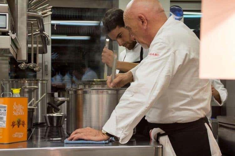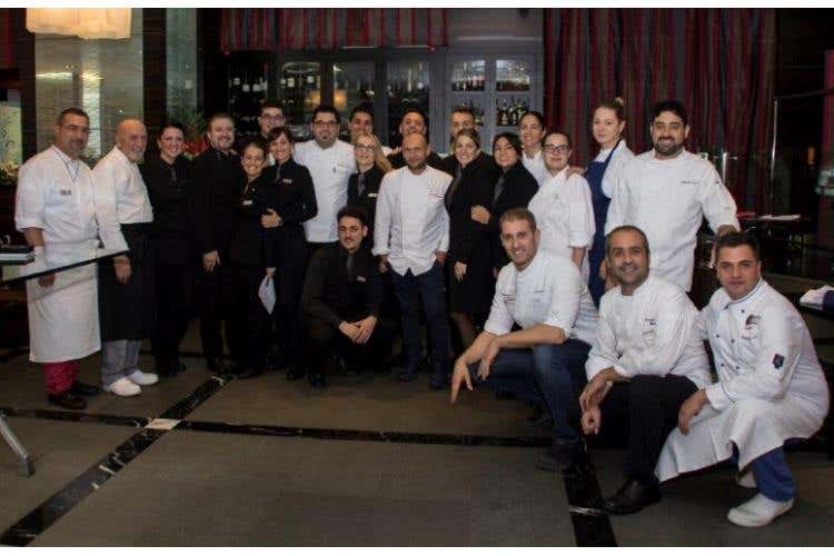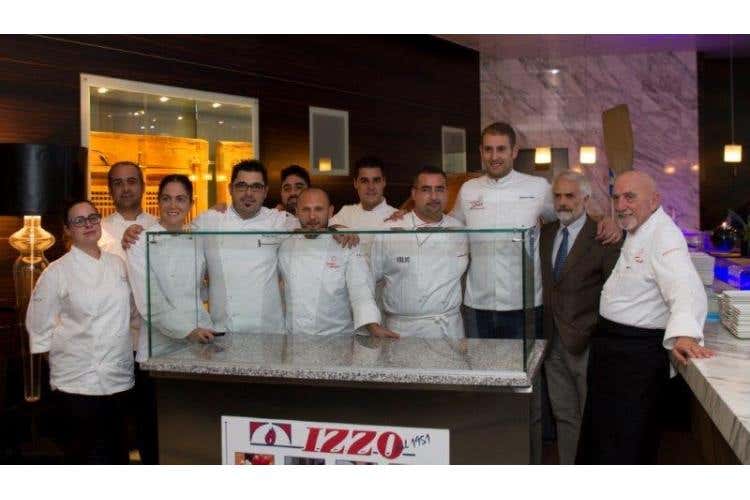 Da sinistra: Salvatore Bianco, Rosanna Marziale, Giuseppe Stanzione, Salvatore Salvo, Fausto Arrighi, Pasquale Palamaro, Vincenzo Guarino, Crescenzo Scotti e Gianfranco IervolinoLo chef stellato è