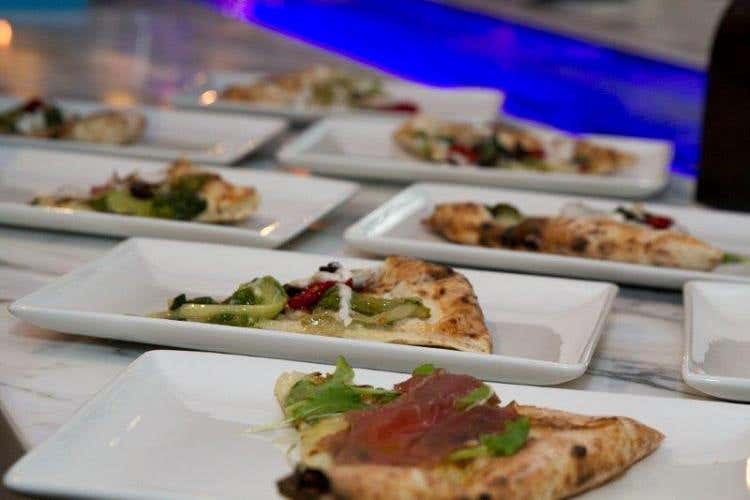 Salvatore Salvo delizia tutti con tre sue pizze: la Cosacca innanzitutto. E poi una bianca con mozzarella di bufala, misticanza, Graukäse, cipolla disidratata e carpaccio di chianina aromatizzato all'anice, coriandolo e cannella. E ancora, in collaborazione con lo chef resident, un'altra eccellente pizza: scarola, pomodorini ed olive disidratate, sgombro scottato a fiamma viva e fonduta di Mozzarella di Bufala affumicata.