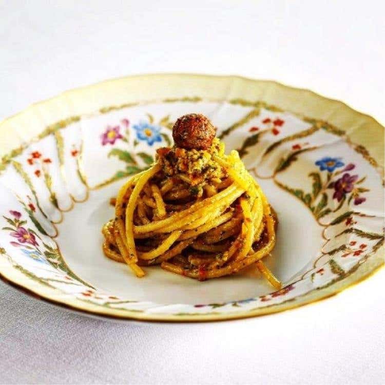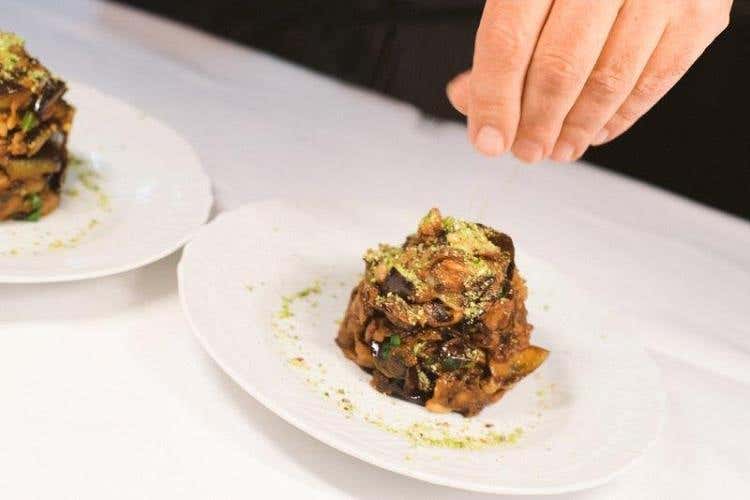 La caponata di melanzane è un altro piatto simbolo della sua cucina, come lo spaghetto alla Norma con ricotta infornata, gli involtini di pesce spada con finocchio e arance, le sue “frittate” sfiziose e creative, il lacerto “ammuttunatu” con la salsa di mandorle tostate, la cotoletta palermitana panata al pistacchio... Sono solo alcuni dei piatti che compongono una carta ricca di sorprese: «Il menu è un’indicazione, quando un cliente vuole un piatto che non è in carta, se ho gli ingredienti lo preparo volentieri, sono un cuoco e cucino per il piacere dei clienti».