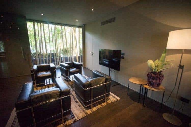 Specialità che continuano a ingolosirci per tutto l’arco della giornata fino all’aperitivo, quando apre il bar notturno. Collocato all’interno del locale, volutamente “intimo” con giochi di luce a illuminare il bancone e il retro con le bottiglie in bella vista, il regno dei cocktail profuma di erbe e spezie, mandorle, agrumi, fichi d’India... Alla reception, il tavolo Ferro, moderno e lineare, e alle spalle due videowall con una cornice d’eccezione, in cristalli di Murano (un adattamento dello spettacolare specchio “Sturm und Drang” di Lissoni), un richiamo classico per bilanciare e nello stesso tempo valorizzare la modernità della tecnologia.