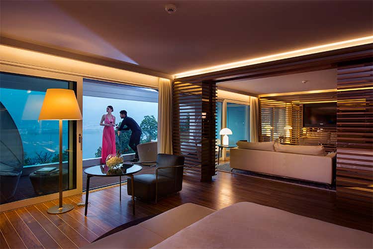 Ciascuna delle 18 suites cattura gli ospiti fin dal primo istante grazie alla vista mozzafiato che regalano le grandi finestre, lasciandoli stupiti ogni volta come fosse la prima. Le suites, tutte rigorosamente vista lago e dotate di uno splendido terrazzo, ricordano una cabina armatoriale di grandi dimensioni: 16 hanno infatti una superficie di 50 mq e due di 105 mq modulabili, con pareti scorrevoli che si possono chiudere creando una meeting room nella zona giorno da dedicare anche al lavoro, ma che di notte si trasforma in una camera da letto per due persone.
