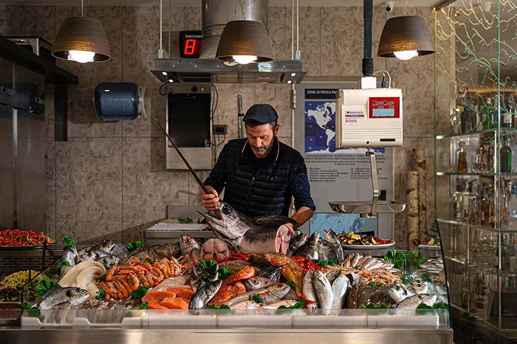 Che per molte pescherie tradizionali vendere il pesce al banco non basti più, lo si è visto e capito in questi ultimi tempi, nel senso che una volta finito l’orario di vendita hanno pensato che, con una cucina annessa, dopo la chiusura potevano anche proporlo cotto e servirlo nello spazio adiacente al banco: così la sala attrezzata con tavoli rustici e sedie diventa trattoria, con proposte di mare a chilometro zero.