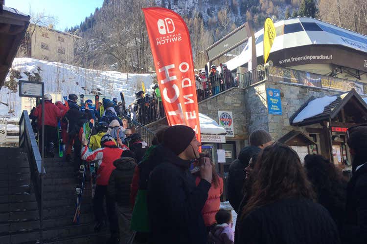 Il giorno seguente, alla partenza della telecabina che apre il versante orientale del comprensorio Monterosa Ski, poca affluenza. I posti a sedere sono fronteggianti, a un metro di distanza. Nessuna restrizione. Il problema sarebbe l’accalcarsi in coda, cosa che si è verificata per l’accesso contingentato alle cabinovie in Valsesia. Il comprensorio Monterosa Ski collega la Val d’Ayas (Champoluc), la Valle di Gressoney e la piemontese Valsesia (Alagna).