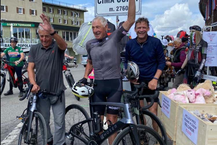Settant'anni anni entrambi e una carriera sportiva che li ha visti protagonisti di vittorie a livello mondiale: Gustav Thöni, leggenda dello sci, e Francesco Moser, indimenticabile campione di ciclismo hanno compiuto una piccola grande impresa. Sono saliti in cima allo Stelvio con le rispettive biciclette fino a quota 2.760 metri.