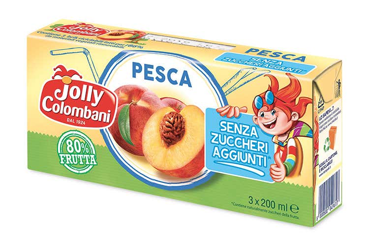 Bevande alla frutta Jolly Colombani, linea Senza Zuccheri Aggiunti, gusto Pesca