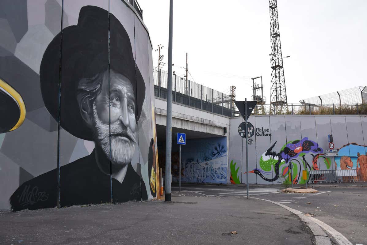 L’itinerario si spinge lontano dal centro con i murales realizzati lungo il muro di cinta di un asilo di Via Venezia nel 1997 dal pittore parmigiano Adriano Orlandi e i graffiti sul Dormitorio Comunale Enzo Sicuri, in direzione Traversetolo, curati da McLuc Culture. È poi di nuovo il Cigno di Busseto il soggetto ispiratore del progetto “Le donne di Verdi” che, ideato da Artkademy e promosso dall’artista Roberta Musi nel 2020, ha voluto omaggiare le figure femminili nelle opere del Maestro “in un racconto non tradizionale che si svolge sulle serrande di Borgo Serena”.