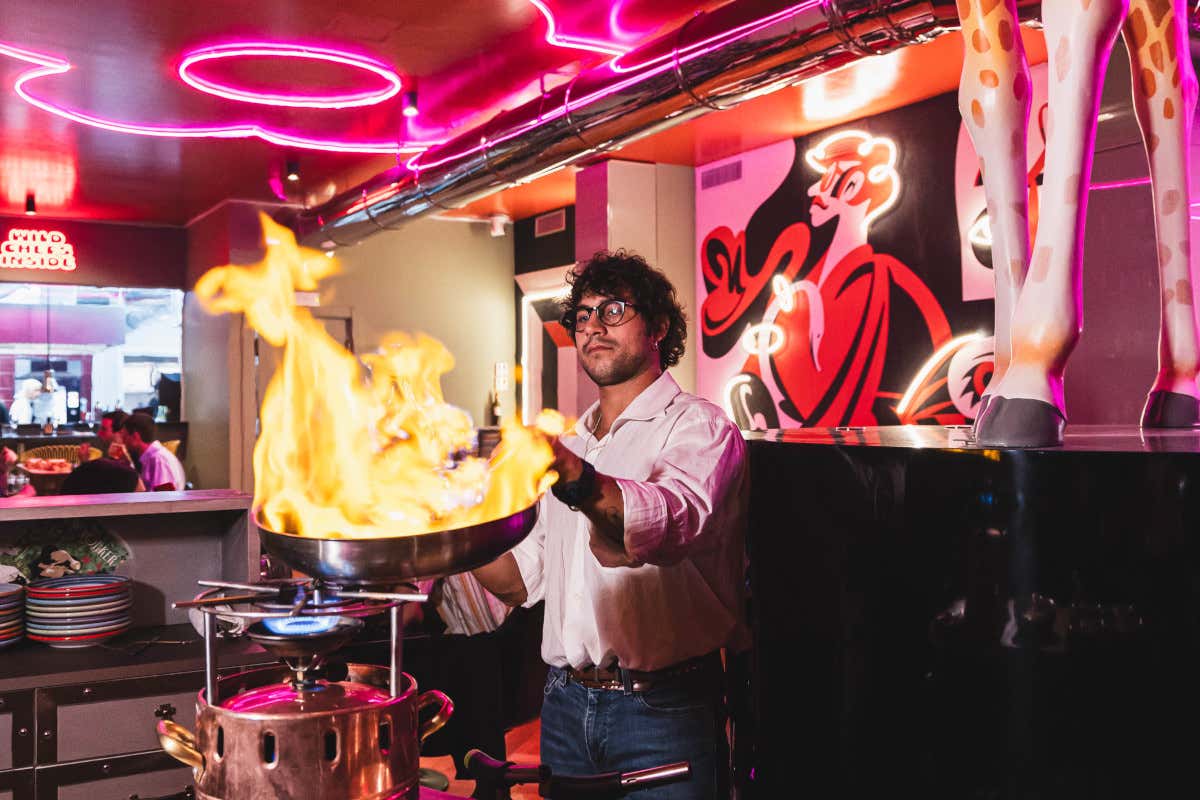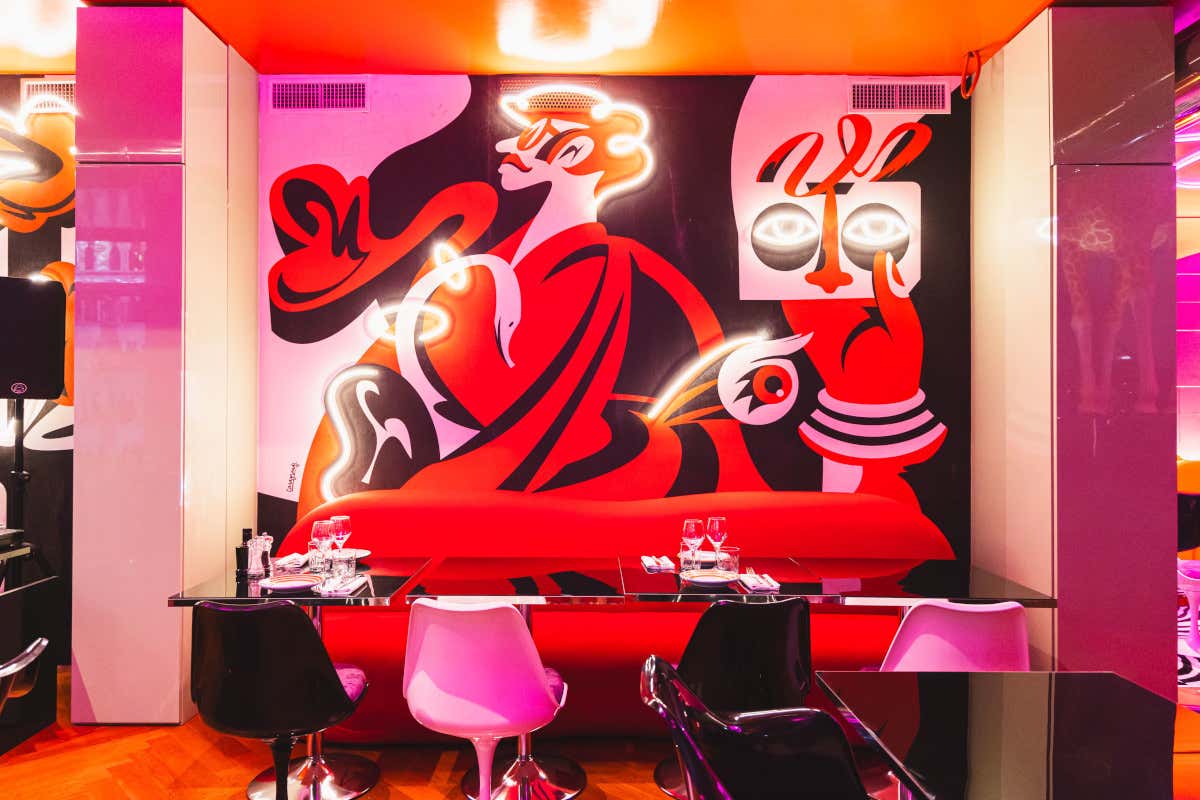Con la sua atmosfera ispirata al celebre Piper di Roma e il suo design pop, Piperita è un inno alla spensieratezza e alla gioia di vivere, che accoglie i clienti in un ambiente unico nel suo genere. Giraffe, sfere stroboscopiche e scritte al neon sono solo alcuni dei dettagli sorprendenti nei quali immergersi. Da non perdere le illustrazioni dell'artista Andrea Casagrande, che ha interpretato lo stile del locale attraverso il suo tratto caratteristico.