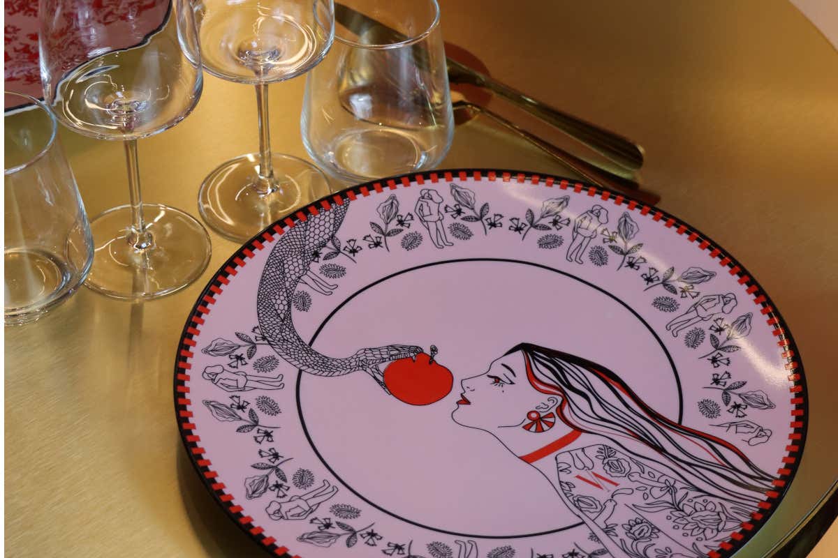 Uno dei piatti con le immagini del kamasutra di Voglia, il primo ristorante erotico d’Italia