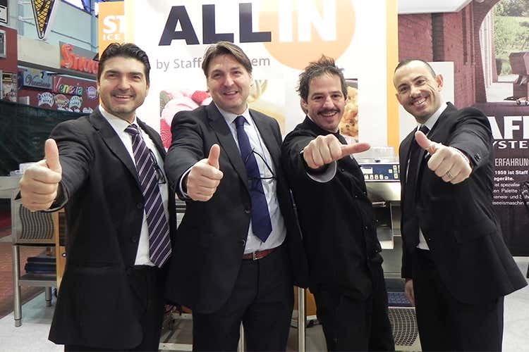 Massimo Gessaroli (direttore commerciale generale), Stefano Gessaroli (amministratore delegato), Angelo Panciera (maestro gelatiere) e Vincenzo Garuti (direttore commerciale Italia)