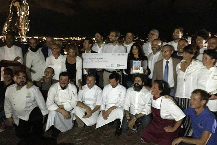 Nonostante la pioggia e il forte vento, l'“Amatriciana Day” al Forte Belvedere di Firenze, per raccogliere fondi a favore delle popolazione colpite dal sisma che ha devastato l’Italia centrale, si è conclusa con un incasso di 7.350 euro (più 45 dollari…) consegnato nelle mani del presidente fiorentino della Croce Rossa Italiana (Cri), Lorenzo Andreoni. All’appuntamento - condotto da Annamaria Tossani e che ha coinvolto 14 tra i più rinomati chef fiorentini e toscani, pronti a rispondere all’appello lanciato sul web - hanno partecipato oltre 350 fiorentini, che fino alle 22.00 hanno gustato pasta all’amatriciana e le specialità degli chef, oltre a dolci, gelato e caffè.