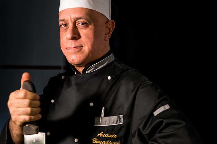 Volendo rappresentare con un’immagine simbolica Antonio Bonadonna, si dovrebbe ritrarlo con la Sicilia fra le mani. Nessuno più di lui mantiene le radici in questa terra ed è capace di coglierne tutte le sfumature del gusto, dei profumi, dell’essenza, della poesia. Nato circa mezzo secolo fa a Castelbuono (Pa), paese di storia e d’arte, incastonato fra il mare, le montagne e il Parco delle Madonie, si è sentito fin da bambino a casa solamente nella sua terra, così ha deciso di muoversi con la fantasia, lo studio e la creatività, mantenendo ben piantate le radici nel suo paese.