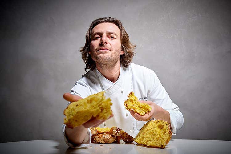 È la neuro-gastronomia, o meglio, lo studio degli effetti neuro-attivi e psico-attivi del cibo, un percorso che Giuliano ha intrapreso già da anni in collaborazione con il suo grande amico Palmiro Carlini (chef neurogatronomo, consulente e volto televisivo per Discovery Italia). Ha giocato quindi con tutte quelle percezioni che gli ingredienti provocano nel nostro cervello inserendo nella ricetta elementi corroboranti e neurotonici come capperi e gocce di assenzio che trasformano la colomba in uno stimolatore di buon umore.
