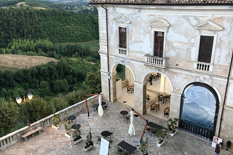 D’estate si cena all’aperto sulla terrazza della piazza, con un panorama suggestivo che abbraccia tutta la valle, dal Gran Sasso al Mar Adriatico; lo stesso panorama che affascina aprendo le finestre delle camere dell’albergo alle prime luci del mattino.