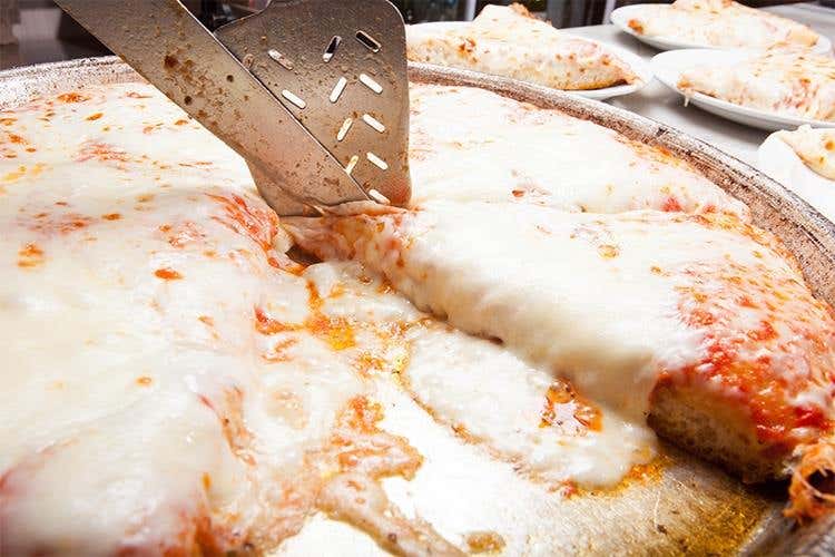 La nostra pizza è soffice, gustosa e con poche varianti; è al trancio, cotta nella padella di ferro e in forno a legna. La ricetta non cambia dal 1953. Serviamo la margherita, la prosciutto cotto e la mediterranea (pomodoro, capperi e acciughe), e gli ingredienti sono rigorosamente italiani. Possiamo quindi parlare di monoprodotto, o quasi, e di facile riconoscibilità del marchio Spontini, identificabile con velocità, efficienza, semplicità e convenienza».
