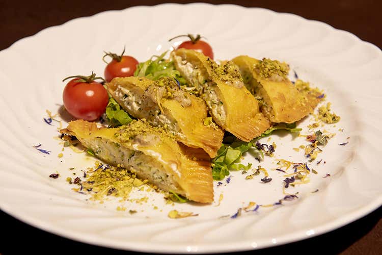 Il “Tortello pistacchioso” è un piatto originale, che nasce quasi spontaneamente, ispirato dall’amore per le mie due terre - la Sicilia e la Toscana. Infatti, il tortello maremmano così tanto apprezzato dai miei clienti, unito al Pistacchio di Bronte, simbolo per antonomasia della Sicilia, hanno dato vita a questo piatto che oggi è il mio marchio di fabbrica. Il “Tortello pistacchioso” è un piatto versatile: l’ho pensato in due versioni, sia come antipasto che come primo piatto. Le materie prime necessarie per realizzare questa ricetta sono facilmente reperibili, in quanto non hanno stagionalità. Le zucchine (tra le verdure più amate, la stagione perfetta per raccoglierle è l’estate, ma si possono trovare tutto l’anno), la ricotta di mucca di Manciano, tipica per il suo aspetto denso, cremoso, per la sua pasta morbida e dal sapore delicato, il Pistacchio di Bronte (in tre consistenze), i pomodori secchi di Pachino (tipici per la loro dolcezza e il loro profumo), le farine senza glutine “Pasta Mix de Il Carrettino (il mio mix), basilico e Grana Padano grattugiato stagionatura 30 mesi.