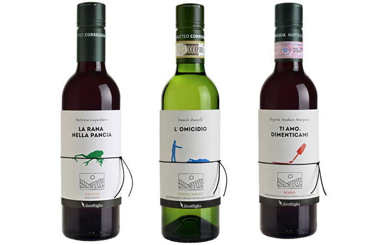 I Librottiglia si distinguono per l’originale “label book”: un piccolo ed elegante libro che funge da etichetta frontale delle bottiglie. Il design grafico si concentra su uno stile minimal, moderno e al tempo stesso sorprendente. La copertina di ogni racconto è illustrata con un’immagine iconica che lo caratterizza. Un cordino crea un rituale nell’apertura e nella chiusura del libretto e stabilisce un “filo conduttore” che rafforza l’identità coordinata della linea di prodotti. Una carta materica è stata usata per dare enfasi anche all’aspetto tattile dell’esperienza. Ogni prodotto è custodito in uno speciale tubo nero con tappo metallico che conferisce ancora più eleganza a ogni Librottiglia.