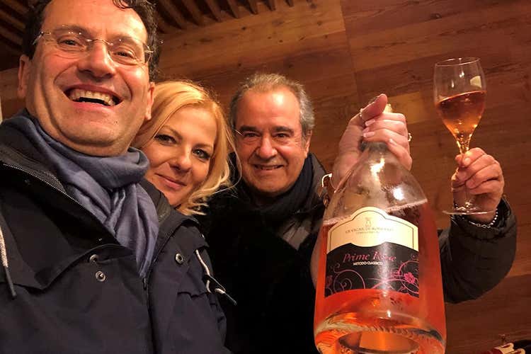 Ma la passione (che si legge negli occhi vispi) per le bollicine ha prodotto anche un metodo classico a base di Pinot Noir con piccola percentuale di Vespaiola “Prime Rosé” che vinifica nella cantina dell’amico Andrea Crozza, di Transit Farm, che con lui condivide il percorso di imprenditore “convertito” ma con la differenza che Andrea è ancora a capo di una griffe di moda di livello globale come Transit, marchio presente in 35 nazioni.