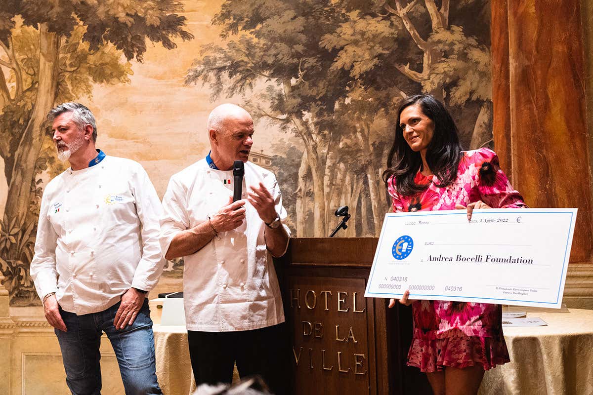 Nel corso della cena si è svolta un’asta benefica il cui ricavato è stato devoluto alla Andrea Bocelli Foundation.