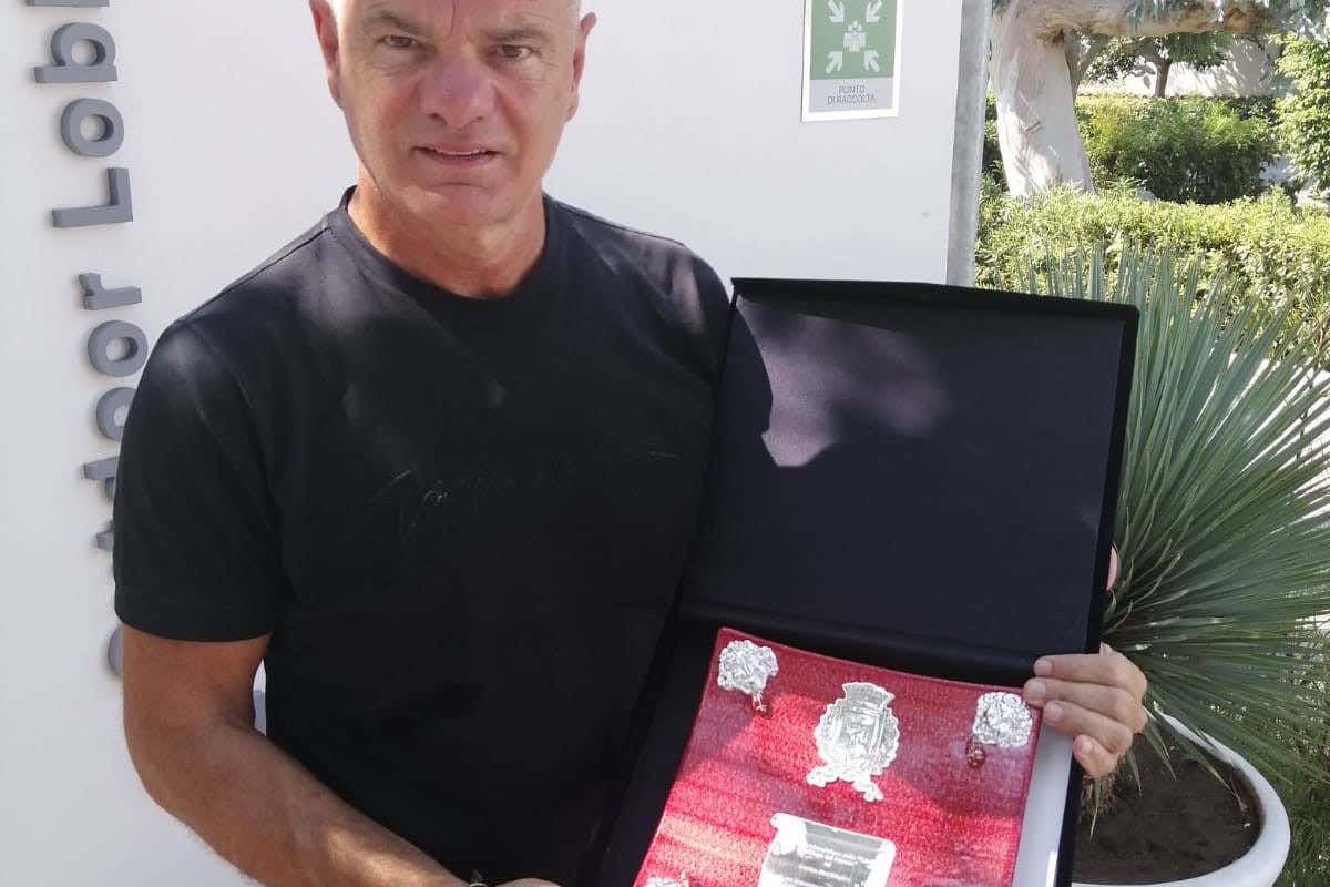 Enrico Derflingher con il riconoscimento ricevuto a Spilinga