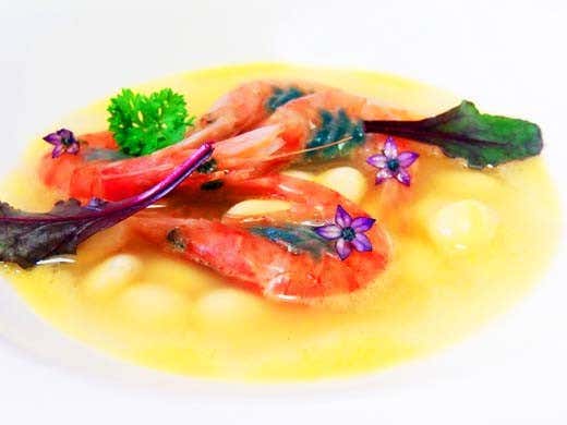Zuppetta di fagioli in brodetto di pesce azzurro, con gamberetti - Food Design