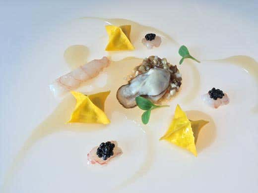 Ravioli, scampi, ostrica, funghi porcini