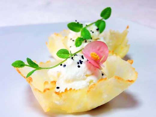 Mousse di burro al baccalà islandese su cestino di parmigiano - Food Design