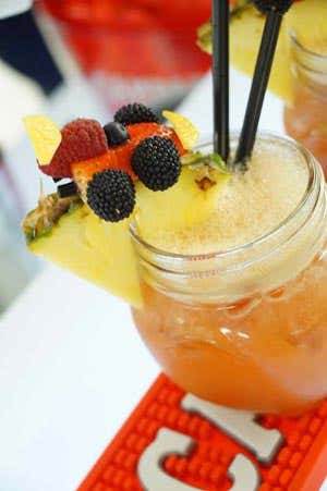 Ingredienti: 3 cl bitter campari; 2 cl vodka raspberry bols; 1 cl sciroppo al lampone fabbri; 12 cl succo di arancia.