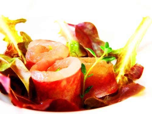 Sashimi di triglia rossa con acqua di arancia amara e misticanza - Food Design