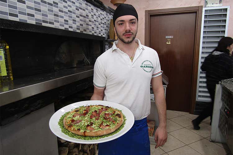 Ricetta di Manuel Francavilla del Ristorante Pizzeria Garden, Milano, presentata al concorso Vide’O Pizza quant’è Bella 2016 nella categoria “pizza fantasia”.Ingredienti: mazzancolle, speck, pistacchio di Bronte.