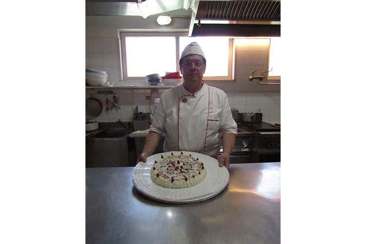 Ingredienti: ricotta di pecora, fragoline di bosco, mandorle tostate, panna montata.