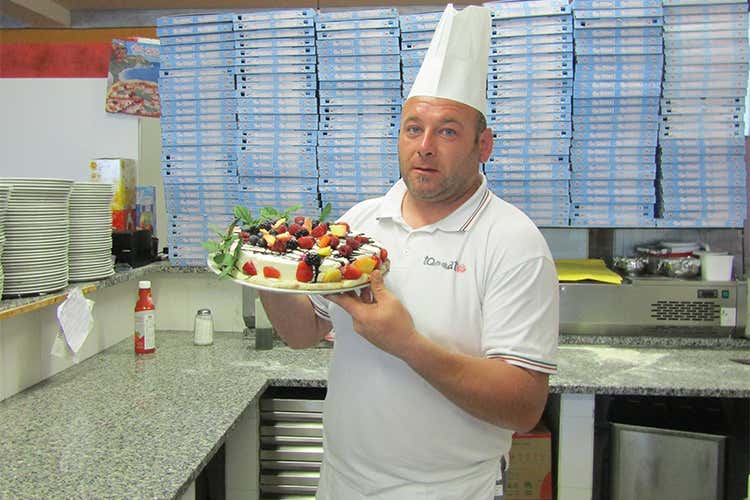 Ricetta di Alessio Rossi del Ristorante Tomato, Montefiascone (Vt), presentata al concorso Vide’O Pizza quant’è Bella 2016 nella categoria “pizza dessert”.Ingredienti: bavarese, topping ai frutti di bosco, fragole, ribes, lamponi, ananas.