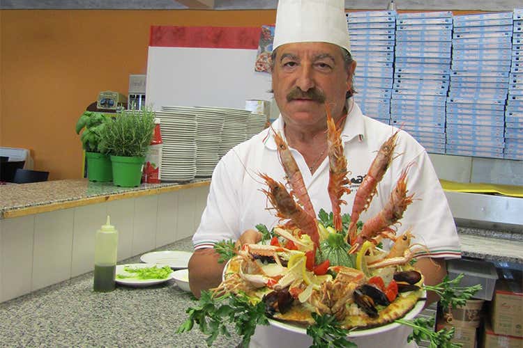 Ricetta di Giancarlo Emidi del Ristorante Tomato, Montefiascone (Vt), presentata al concorso Vide’O Pizza quant’è Bella 2016 nella categoria “pizza fantasia”.Ingredienti: crema di scampi, zucchine, cozze, gamberi, pomodorini.