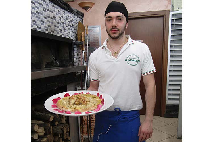 Ricetta di Manuel Francavilla del Ristorante Pizzeria Garden, Milano, presentata al concorso Vide’O Pizza quant’è Bella 2016 nella categoria “pizza dessert”.Ingredienti: panna, nocciole Igp del Piemonte, pasta sfoglia sbriciolata, cannoncini.
