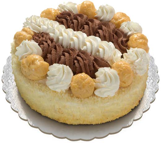 Costruzione del dolce: tagliare il pan di spagna a metà, inzuppare con la bagna al Grand Marnier. Farcire con la Mousse au chocolat Debic e sovrapporre l’altra metà del pan di spagna. Posizionare i bignè farciti con la Mousse au chocolat Debic sulla parte esterna del pan di spagna. Decorare con Panna Zuccherata Debic e Mousse au Chocolat Debic, servendosi di un sac a poche munito di bocchetta rigata.