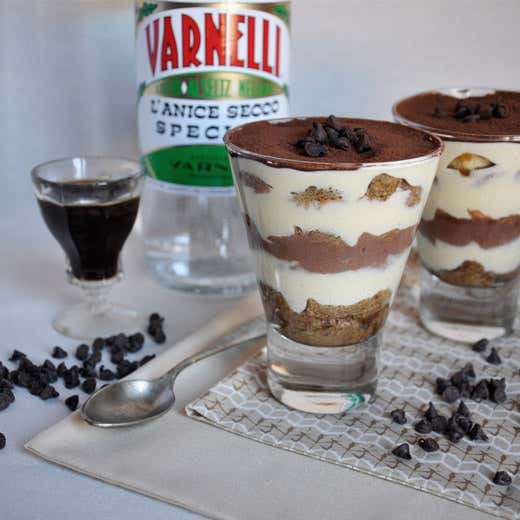 Per la crema: 4 uova fresche, 300 g di mascarpone, 200 g di ricotta, 100 g di zucchero di canna, un bicchierino di Varnelli