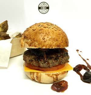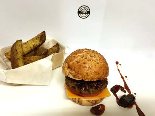 Impiattamento: tagliare i panini a metà, mettere il cheddar, poi la fetta di pomodoro, poi il burger, poi gli anelli di cipolla e per ultimo il dressing al balsamico, coprire il panino con l’altra metà e gustare ogni morso con le patate arrostite ben calde. Controllare sempre che i prodotti siano ammessi per celiaci.