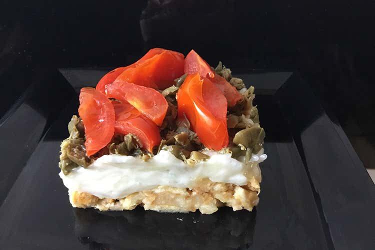 Ingredienti (per 2 persone): 1 tazza di riso, 1/2 cucchiaino di aceto di mele o riso, 100 g stracchino con fermenti lattici, 1 pacchetto di crackers salati, acqua di pomodoro q.b., 5/6 pomodorini, zucchero q.b., sale q.b., olio evo q.b., capperi (sotto sale o salamoia) q.b., origano fresco q.b.