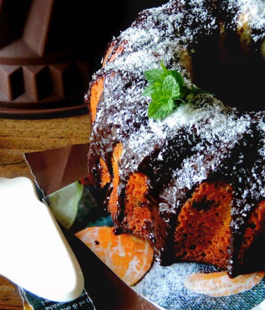 Procedimento: in una capiente terrina setacciate farina, cocco, zucchero e lievito. A parte lavorate le uova, l’olio, lo yogurt, qualche goccia di estratto di vaniglia e le banane ridotte in purea. Unite il composto di uova agli ingredienti secchi e amalgamate bene montando il tutto fino a renderlo omogeneo, aggiungete il cioccolato fondente ridotto in pezzi grossolani. Imburrate e infarinate uno stampo a ciambella, versatevi l’impasto preparato, livellatelo con una spatola e infornate a 180°C per 40-45 minuti. Preparate la glassa sciogliendo a bagnomaria il cioccolato assieme alla panna e versatela sulla superficie della torta, guarnite con scaglie di cocco rapè.