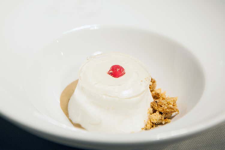 Preparazione: in una planetaria montare gli albumi. Nel frattempo sul fuoco, unire lo zucchero con l’acqua e il Syramusa e portare a 121°C. Unire il composto ai bianchi d’uovo. Appena raffreddata la meringa, aggiungere la panna semi montata e aromatizzata con la buccia di limone. Inserire il composto in stampi e abbattere a -18°C. Per lo sciroppo unire l’acqua, lo zucchero semolato e il Syramusa in una pentola e, a fuoco basso, portare il composto a una riduzione di 1/3, quindi aggiungere la gelatina. Trasferire in una placca e posizionare nuovamente in abbattitore fino ad ottenere una gelatina morbida ma consistente. Per la salsa di liquirizia unire tutti gli ingredienti a freddo in una busta sottovuoto e cuocere a 85°C per 12-14 minuti. Al termine, immergere il sacchetto in acqua e ghiaccio.