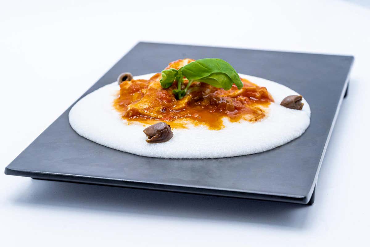 Polenta fioretto e polpo in umido