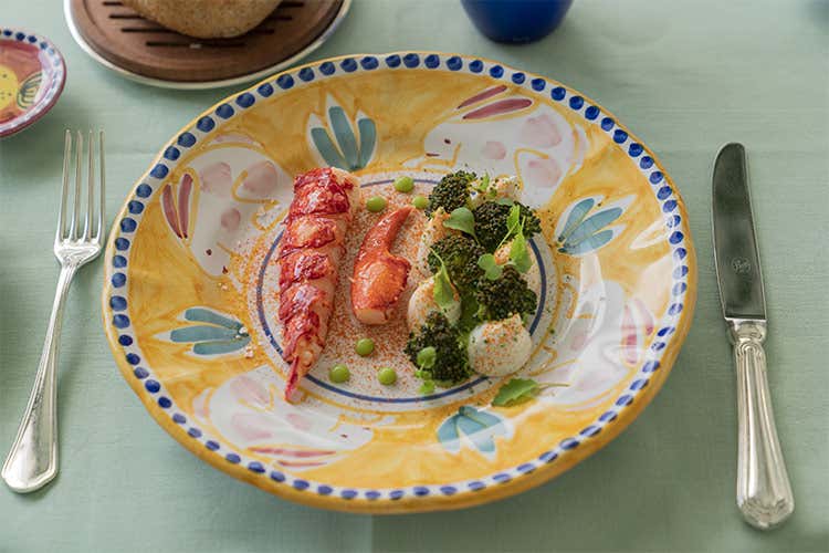 Per i broccoli tagliare le cimette più piccole e sbollentarle in acqua salata fino a cottura desiderata (circa 4 minuti) e poi raffreddare in acqua e ghiaccio. Il restante dei broccoli, stracuocerli e poi frullarli a caldo aggiungendo olio a filo fino ad ottenere una purea ben liscia.