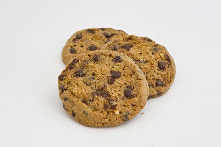 Ingredienti: 401 gfarina, 6 g bicarbonato di sodio, 2 g lievito baking, 2 g sale, 272 g burro morbido, 177 g zucchero, 260 g zucchero di canna, 47 g tuorlo, 71 g albume, 1 bacca vaniglia del Madagascar, 543 g gocce di cioccolato, 213 g filetti di mandorle, 100 g chicchi di caffè Bar Speciale Julius Meinl tritati