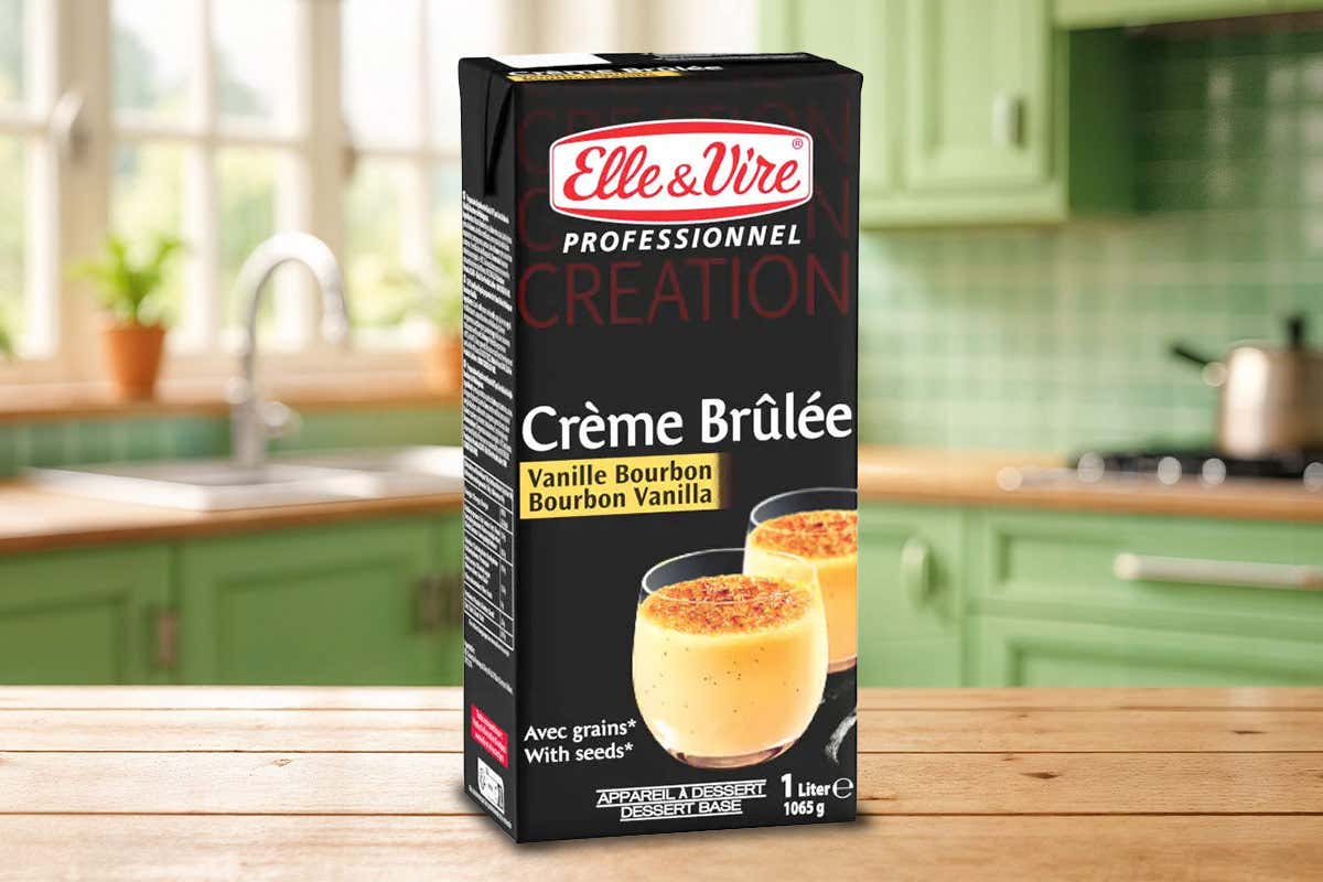 Quando l’eleganza francese incontra i profumi caldi e speziati, nasce un dessert capace di sorprendere per equilibrio e raffinatezza. La Crème brûlée pan di zenzero e pere è un dolce che unisce la setosa cremosità della tradizione d’Oltralpe alla dolcezza avvolgente delle pere caramellate e alle note aromatiche delle spezie. Realizzata con Crème Brûlée Elle & Vire Professionnel®, creata a partire dalle migliori panne e ingredienti selezionati per offrire una degustazione nella direzione dell’eccellenza e che ha tutte le caratteristiche di una Crème Brûlée fatta in casa, con semi di vaniglia bourbon.
