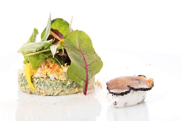 Insalata di erbe fini e spinaci, mimosa e formaggio della Valcuvia al tartufo bianco