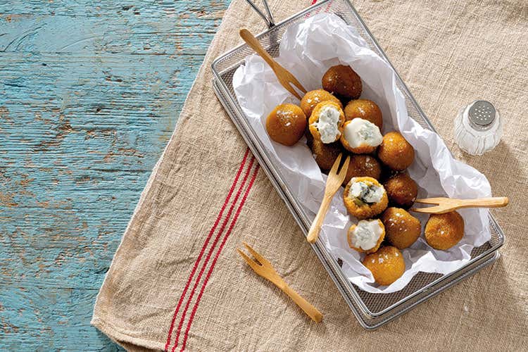 Tagliate il Gorgonzola Dop a pezzetti di circa 2 cm per 1 cm, disponeteli su della carta da forno e fateli raffreddare in frigorifero per 45 minuti. Denocciolate le olive con l’aiuto di un coltellino affilato. Tagliatele a spirale attorno al nocciolo senza spezzarle. Procedete per tutte le olive. Farcite le olive con un pezzetto di Gorgonzola raffreddato e compattate bene. Passate ogni oliva nella farina poi nell’ uovo sbattuto ed infine nel pangrattato. Friggete le olive in abbondante olio bollente fino a doratura. Salatele e servitele calde.