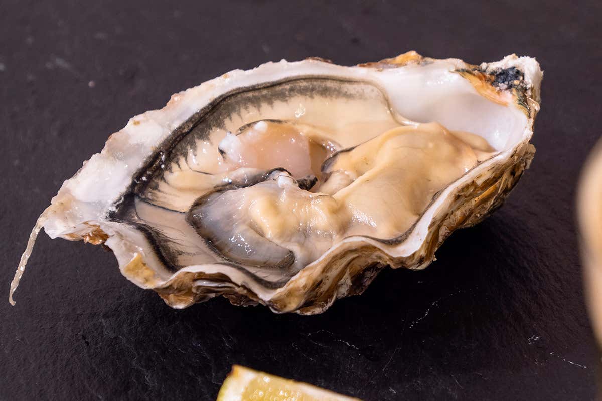 Aprire le ostriche e recuperare il frutto conservando l’acqua contenuta nelle stesse. Preparare una citronette montando succo di limone e l’olio extra vergine d’oliva versato a filo e metà dell’acqua delle ostriche.