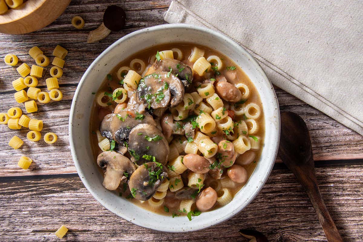 Pasta di grano Kamut® con fagioli e funghi trifolati
