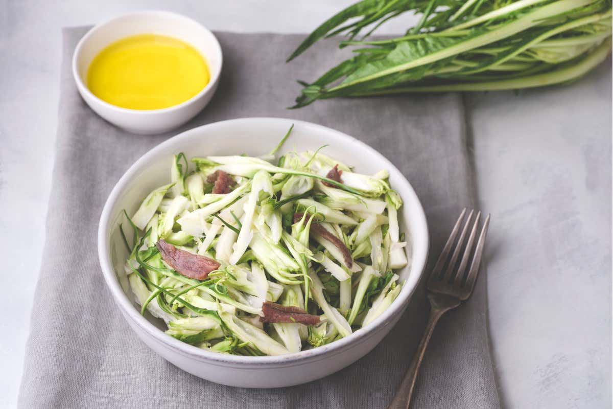 Le puntarelle alla mediterranea con alici, pangrattato e Aceto Balsamico Tradizionale di Modena Extra Vecchio Dop sono un piatto dal gusto deciso e autentico, perfetto per chi ama i sapori tipici della cucina romana rivisitati in chiave moderna. Questa ricetta, proposta dallo chef Andrea Palmieri, proprietario del ristorante Hostaria BucaVino di Roma e membro di Nutrizione In Cucina Academy, unisce la freschezza croccante delle puntarelle al sapore intenso delle alici impanate, il tutto esaltato da un tocco di Aceto Balsamico Tradizionale di Modena Dop e olio extravergine aromatizzato all’aglio.